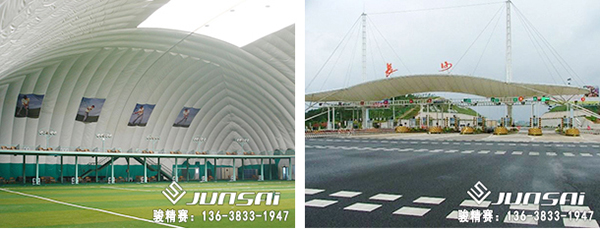 大型篷房、篷布、PVC涂層布、張拉膜結構(索膜結構、空間膜結構)、氣膜建筑等膜材產品的焊接,適合直線或長距離產品的焊接。如篷布拼接、支架游泳池、充氣艇、軟體沼氣池、兒童充氣城堡、體育看臺膜結構、垃圾填埋區氣膜建筑等。