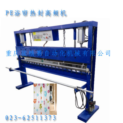 駿精賽PE浴簾熱封機雙聯動汽缸驅動,保證機床平衡運動,彈簧嵌入,焊接面可自適應模具平衡,多點加熱保證模具導熱均勻,高準確度多點控溫,工作節拍可達1s/1次。