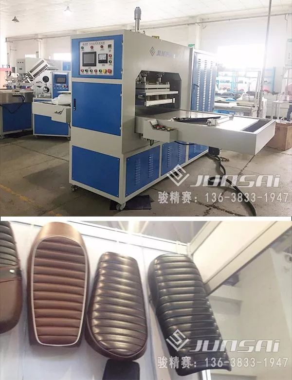 一看,其實我司也是有設備可以做的,類似的摩托車坐墊都是可以使用高頻工藝或吸塑工藝生產,今天小編先為大家介紹一下采用高頻工藝生產的設備—摩托車坐墊高頻壓花機。