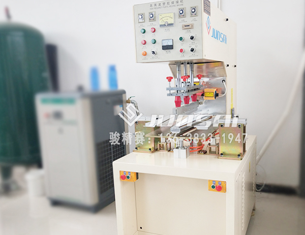 設備為半自動化程度,外形簡單,占地面積小。設備操作很簡單,只需人工把產品放置在指定的位置,按下啟動按鈕,就可以做出一個產品。設備從外觀上來看,類似于單頭高頻焊接機,功率大小可以定制,常規5KW就足夠熱合焊接,設備在價位上比較便宜,采用氣壓加壓的方式,手動調電等功能。