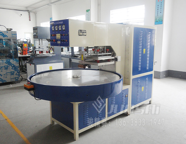 四工位自動轉盤包裝機屬高周波高頻機。設備作業自動旋轉至工位,很大程度上提升了工作效率。