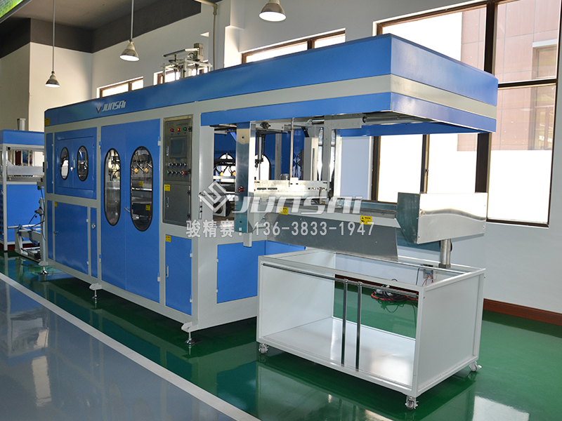 駿精賽全自動高速吸塑機優勢多多,擁有PLC人機控制屏,能存儲多套數據,可自動化的控制機器生產以上產品,并且整個過程速度快,生產效率高,使用人工少。