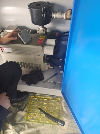 二、更換前,真空泵需要運轉30分鐘左右,是油溫升高,然后打開卸油口排除廢油: