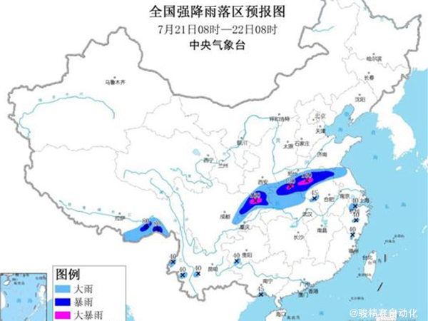 中國天氣網訊中央氣象臺7月21日06時發布暴雨藍色預警: