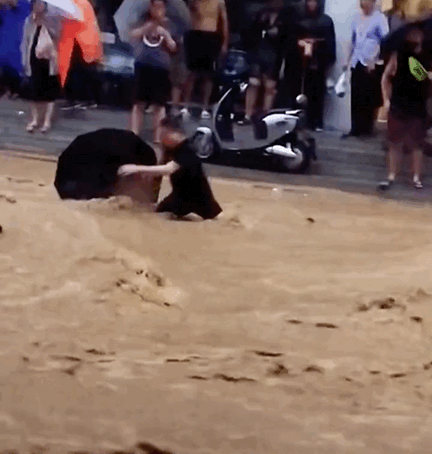 往日車水馬龍的繁華街道,如今變成變成泥水滾滾的流沙河,人根本無法站立行走,在洪水中翻滾掙扎。