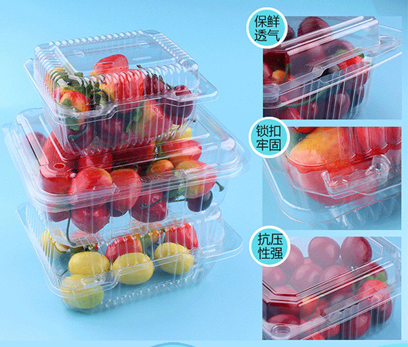 像這樣的水果盒,大部分原材料是采用PP或者PET,安全環保,保鮮透氣,鎖扣牢固,抗壓性強。像這樣材質的蔬菜水果盒一般會用到吸塑機來吸塑成型。