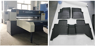 汽車腳墊尾箱墊之雙面自動送料裁斷機設備介紹