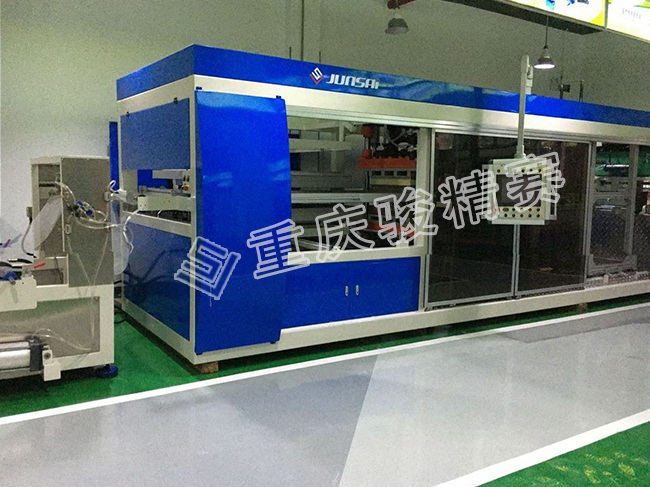 重慶駿精賽吸塑裁切一體機客戶現場實播