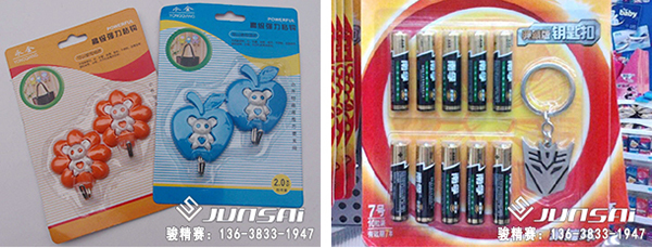 例如:五金包裝的熱合加工(螺絲刀、剪子、壓線鉗等);生活用品包裝的熱合加工(電池、牙刷、燈泡等);文具用品包裝的熱合加工(簽字筆、卷筆刀、文具套件等);還有玩具包裝的熱合加工、運動品包裝的熱合加工、器械包裝的熱合加工等。