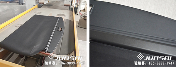 汽車遮物簾加強密度板周邊以及防撞條的一次性焊接。