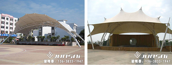PTFE膜結構運用場所:公園廣場、觀景臺、舞臺、體育場館、步行街、停車場、高速公路收費站、展覽中心、機場等。