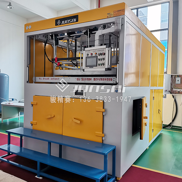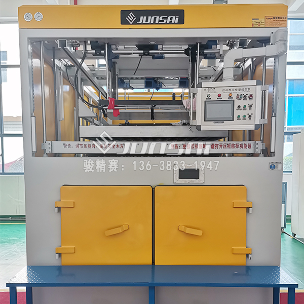 2、在工作時,機器可將加熱后的膠片向上吹起后再吸塑,可使產品四壁厚薄均勻,很大的改善了產品的拉伸波紋。