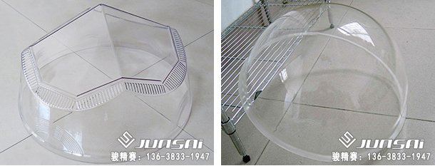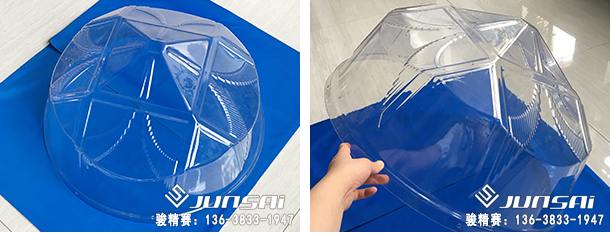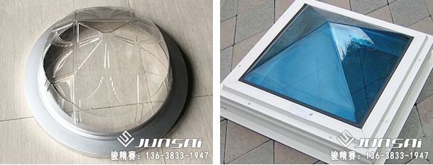 采光罩、展示臺罩等產品的吸塑成型,材料一般為PC,也可使用PVC、PE、PS、PP、ABS、ASA、PMMA、HDPE、HIPS等熱塑性板材。