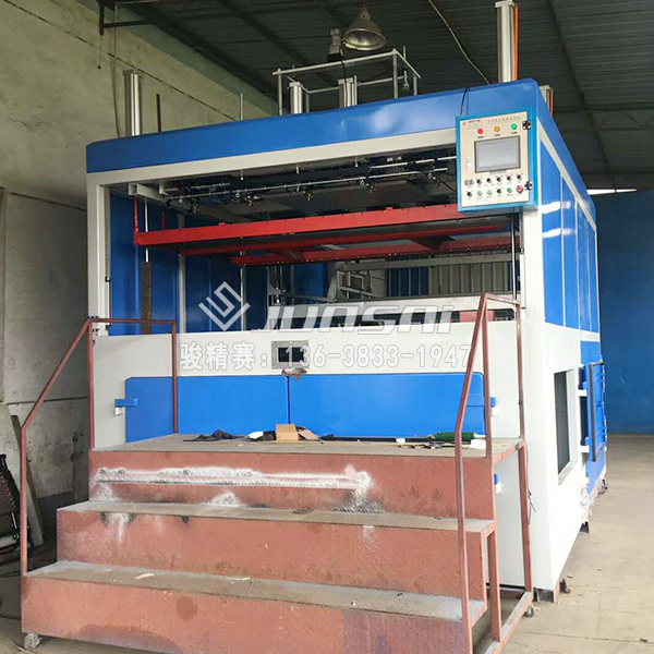 2、在工作時,機器可將加熱后的膠片向上吹起后再吸塑,可使產品四壁厚薄均勻,很大的改善了產品的拉伸波紋。