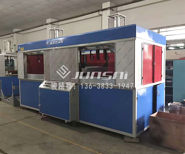 3、雙工位設計,一工位在加熱材料、吸塑時,另一工位可冷卻產品、取產品、放材料,兩個工位交替工作,提高生產效率。