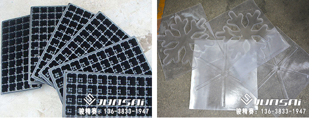 電池、玩具、禮品、五金、文具等產品的塑料包裝;快餐盒、餅干盒、水果托盤、月餅托盤等食品包裝;帽托、穴盤、防塵罩、指示標牌等塑料制品的吸塑成型。
